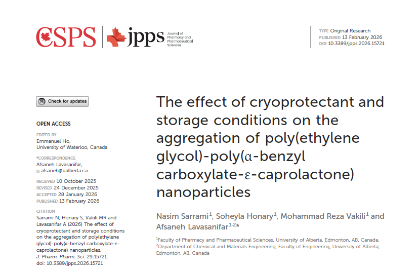 carboxylate-ε-caprolactone) nanoparticles" in the Journal of Pharmacy & Pharmaceutical Sciences (February 2026)!
